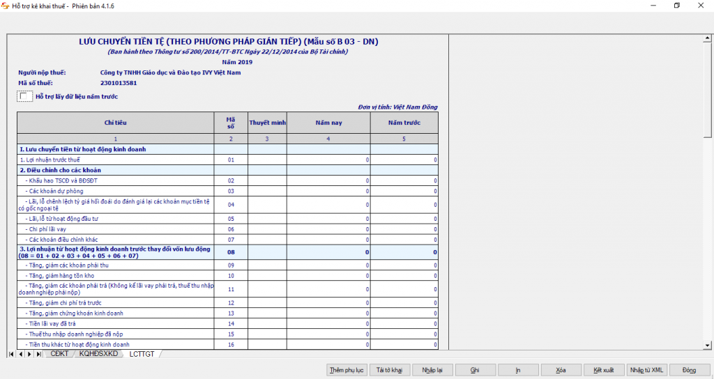 Các chỉ tiêu [01], [02], [03], [04], [05], [06], [07], [09], [10], [11] , [12], [13], [14], [15], [32], [34], [35], [36], [61]: Nhập số âm dương, mặc định là 0