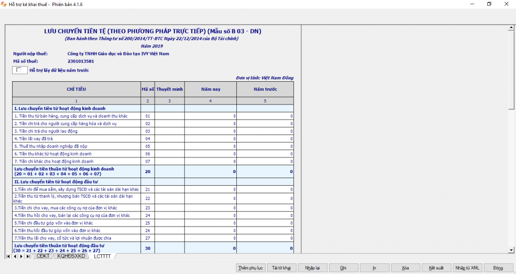 Lưu ý chỉ được chọn 1 trong 2 bảng lưu chuyển tiền tệ: LCTTTT (trực tiếp) và LCTTGT (gián tiếp).