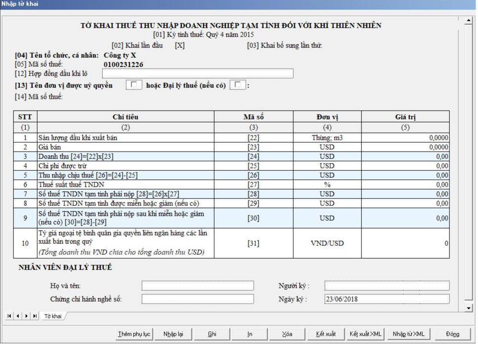 Khí thiên nhiên (còn gọi là khí đốt) là một hỗn hợp khí dễ cháy được sử dụng làm nhiên liệu và nguyên liệu cho ngành công nghiệp chế biến hóa chất. Vậy việc lập tờ khai thuế TNDN tạm tính đối với khí thiên nhiên có quá khó khăn hay không. Hãy cùng kế toán Bảo Tín tìm hiểu xem để lập tờ khai thuế TNDN sơ bộ cho đơn vị sản xuất loại khí này trên phần mềm hỗ trợ kê khai, thực hiện như sau: